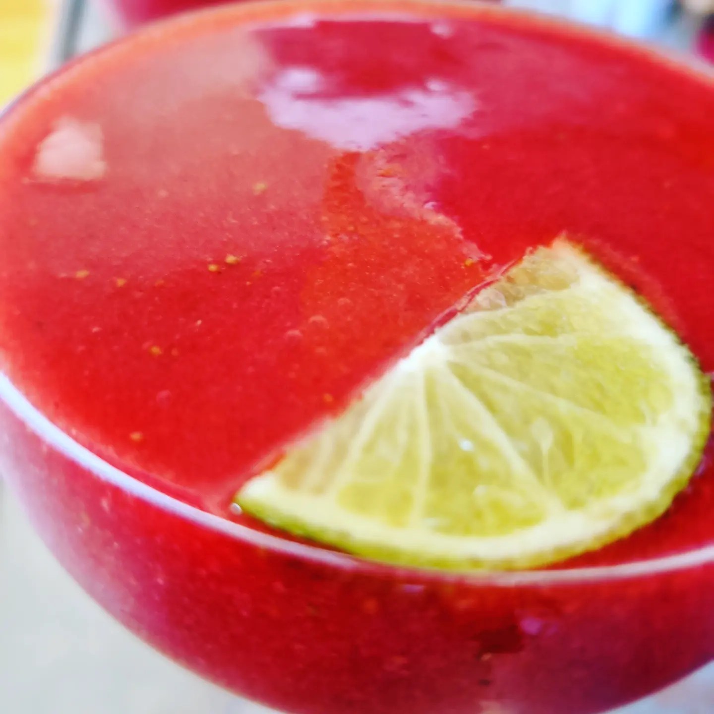 Blandade till en variation på strawberry daiquiri fyllt med gin, jordgubbar, jordgubbssaft från Hafi samt pressad lime.