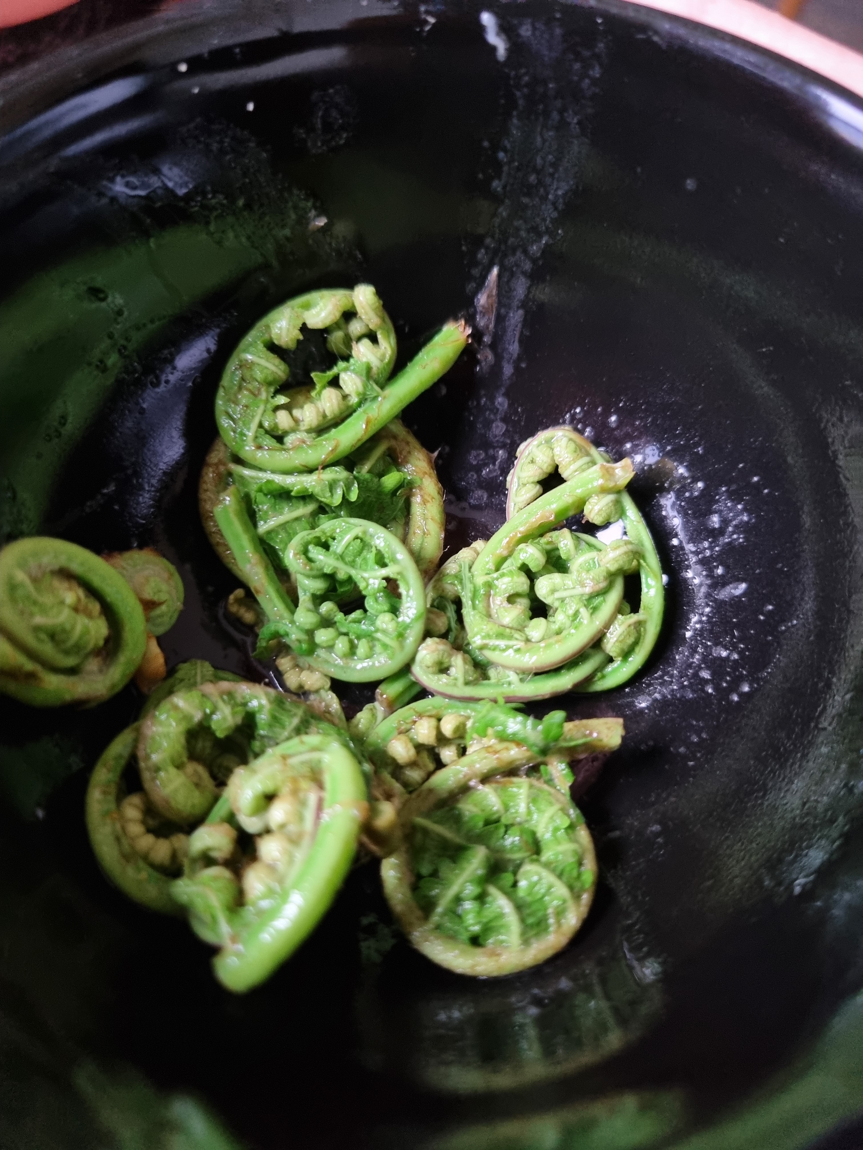 Det är nu det är dags att ta vara på allt som skogen bjuder på. Här har vi strutbräknar brynt i smör. Kan även friteras men för att få fram så mycket som möjligt av grönskan så väljer vi att bryna.