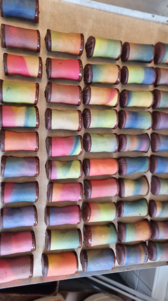 Här ser ni en fantastisk fin regnbågstårta som vår lärling har skapat. Att vi pysslar och lyfter upp dessa godsaker i regnbågens alla färger är för mig personligen viktigt. Det betyder så mycket för den som det berör och känner till betydelsen och vikten av denna symbol.