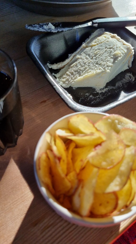 Ljuvlig triple crème-ost från Bourgogne. Délice de Bourgogne är en färskost från Bourgogne i centrala Frankrike. Fantastiskt krämig, gräddig, len och ganska mild vitmögelost som har fått lite extra grädde tillsatt i ostmassan. Jag unnar mig aldrig något själv men en bit ost lite då och då. Samt tryffelchips med potatisskal..
