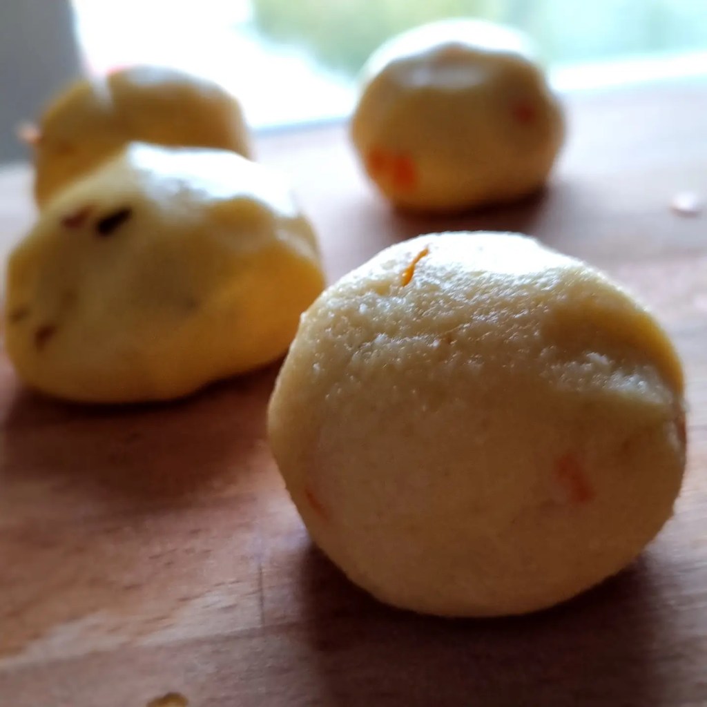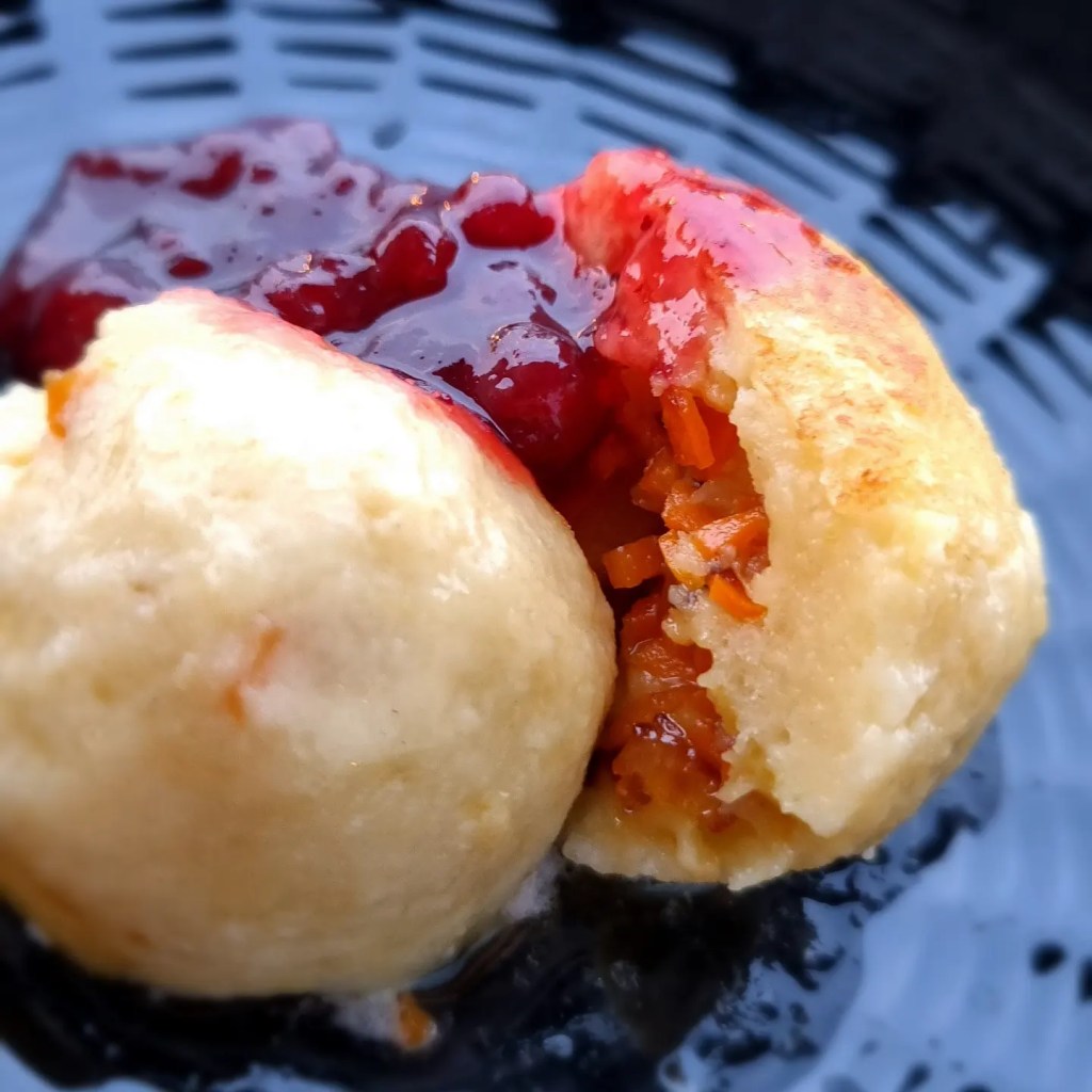 Söndagens ihopslängmiddag fick bestå av enkla kroppkakor. Jag kokar ett gäng potatis. Potatis och lök är väl något en ofta har hemma? Jag hade morrötter som jag mandolinar för att få extra tunt. Jag bryner finhackad lök och morrötterna rikligt med smör och en tesked olja. När potatisen är kokad så åker pressen fram efter att potatisen fått svalna. Blanda ner ett ägg och nån matsked mjöl tillsammans med pressade potatisen. Dega ihop och tryck ut till små bollar och fyll, rulla ihop och koka. Kroppkakorna är klar när dom flyter upp. Jag föredrar att steka dom för att få frasig yta. Servera med rårörda lingon och skirat smör.