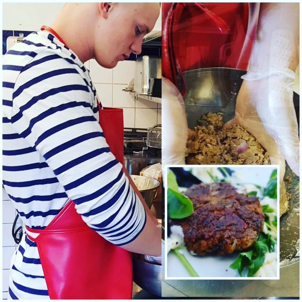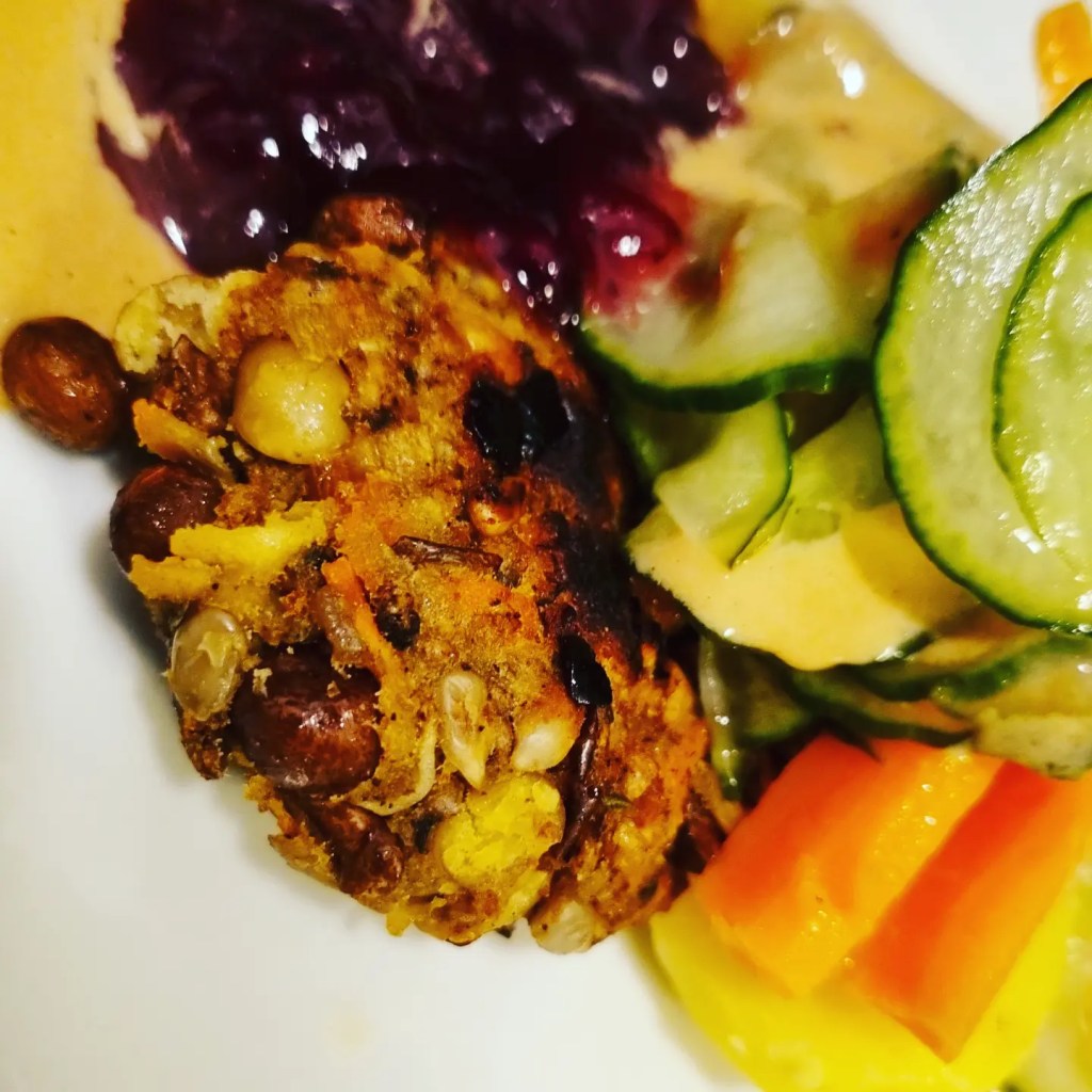 Gråtärtbiffarna fylld med solrosfrön, morrötter, palsternacka och kryddor satt som ett smäck.