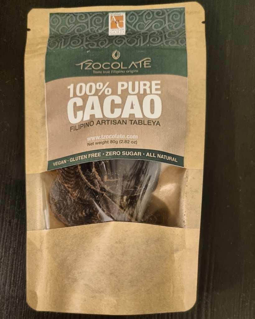 Vad är då Tzocolaté? Det är 100% Filippinsk mörk chokladdryck av tableya – gjord av rena vedrostade kakaobönor, grovt malet och formade till runda tabletter.
