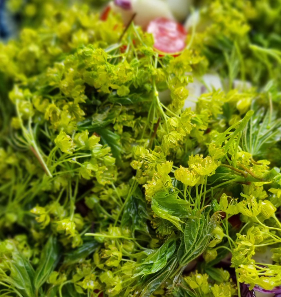 En härlig vårsommarsallad inspirerande från Life by Lisen. Kirskål, ängsört, rödkål, tomater och lönnblom. Det är helt fantastiskt då vi har över 250 ätbara växter i Sverige.