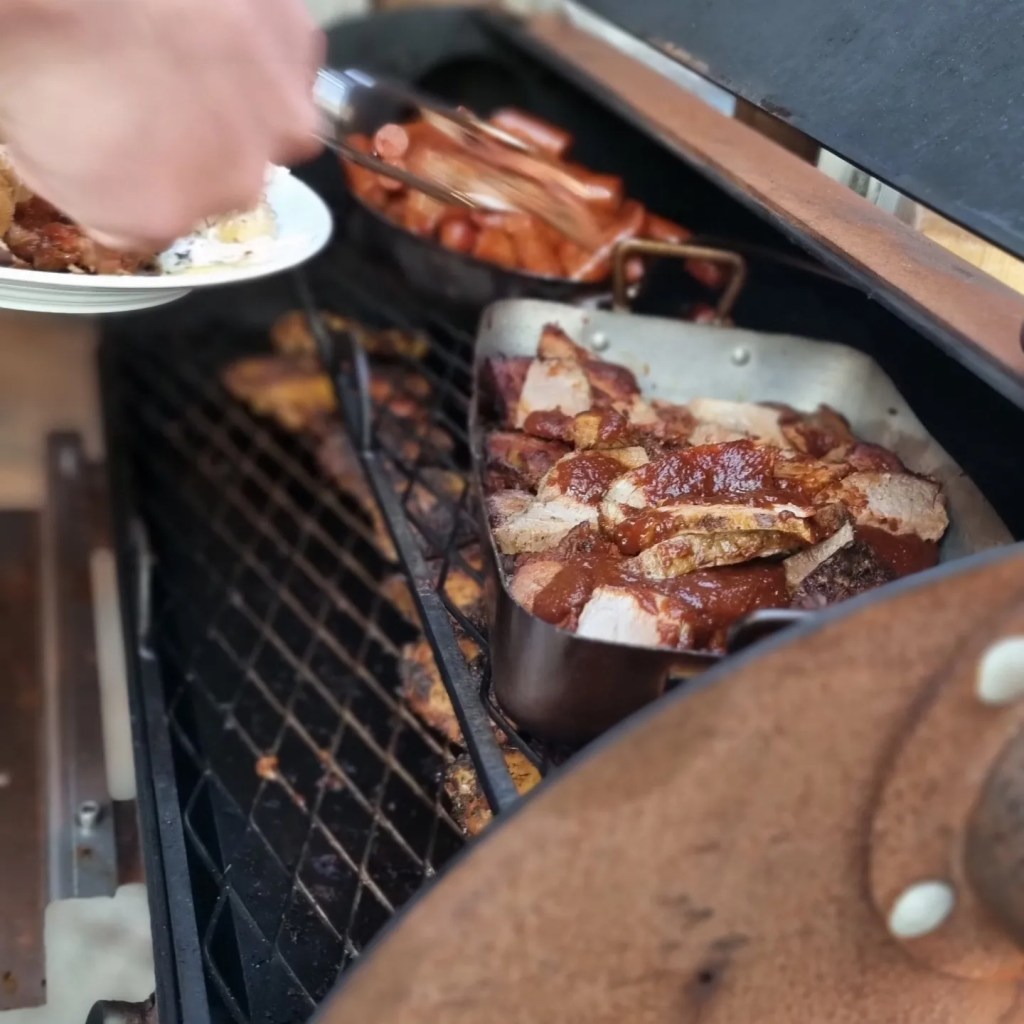 För den som väljer grillbuffen erbjuds alltifrån helgrillat lamm, kyckling, lammkorv, lammribs, ribs och mycket annat hos lammkocken. Lammen kommer i från Graute Gård och grillas långsamt över glödbädden.