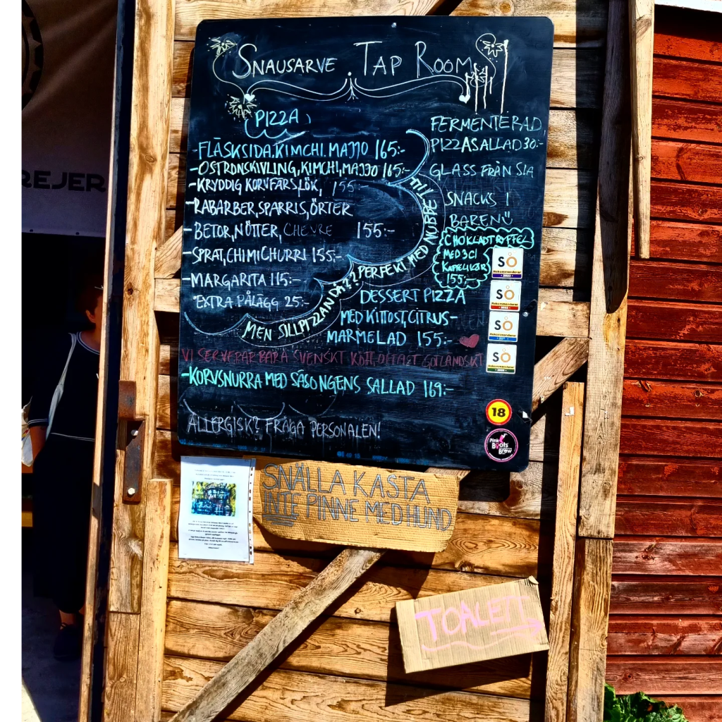 Jag bara älskar alla dessa pärlor som dyker upp överallt på Gotland. Jag uppskattar också när vi tar vara på lokala råvaror. Här bryggs det med salmbär, egenodlade korianderfrön, druvmust från Kebbes och rökmalt från Rone samt så såg jag en stor plätt med gröna kryddor på gården som plockas direkt innan servering. Den känslan med närhet till det goda direkt på fat och glas är på riktigt. Det här är en oupptäckt pärla för i år.