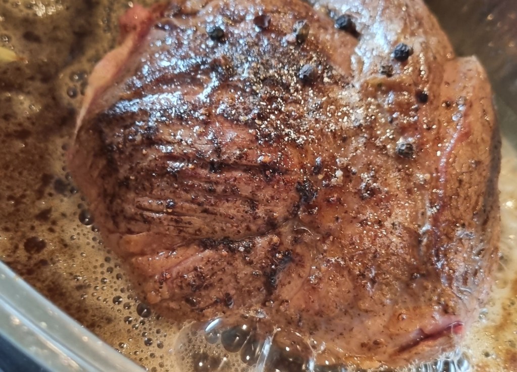 Det blev inte bra men vid serveringen så gick den delvis åt med den kokta Amandine potatisen som mosades ihop med såsen.