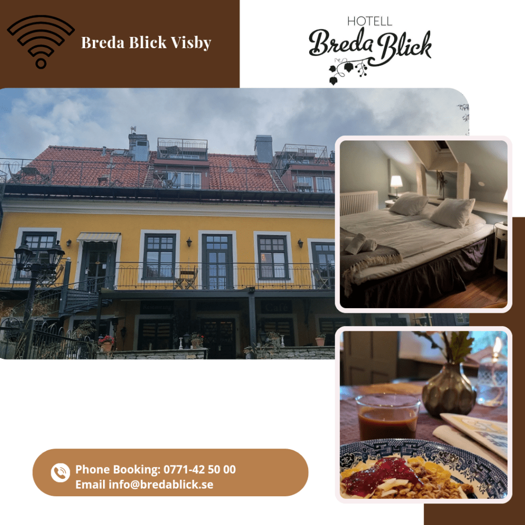 Från att bara ha bokat oss på Hotel Gute så blev det hotel Breda blick. Hotellet som banar vägen för andra hotel och lillasyster Gute. Det är ett sekelskiftehotell som består av två sekelskiftehus så det är hur vackert som helst.