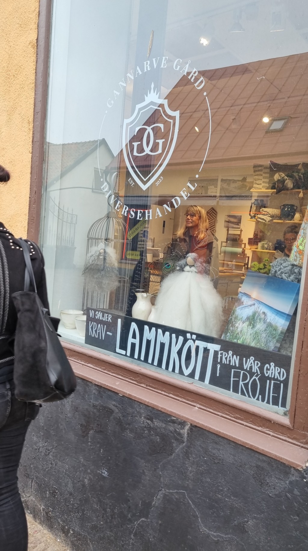 Idag hade äntligen butiken på Adelsgatan 2 öppet. Här finns det en frys laddat med kött, kravmärkt lammkött och inrednings hantverk med alltifrån kläder, keramik, lammskinn och andra godsaker för öga och smak.