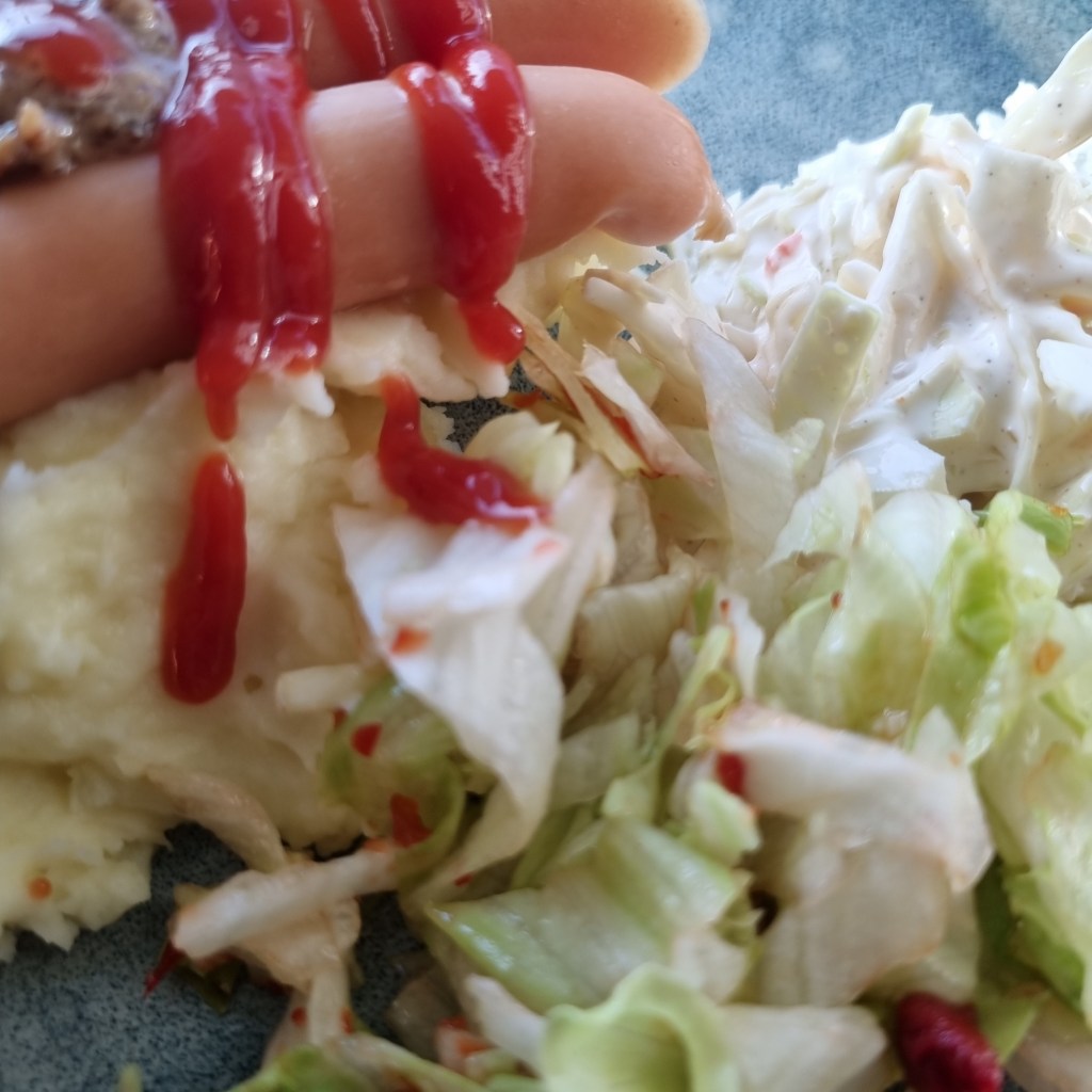 Peas of heaven korv för vegetarianer och mjölig potatis.