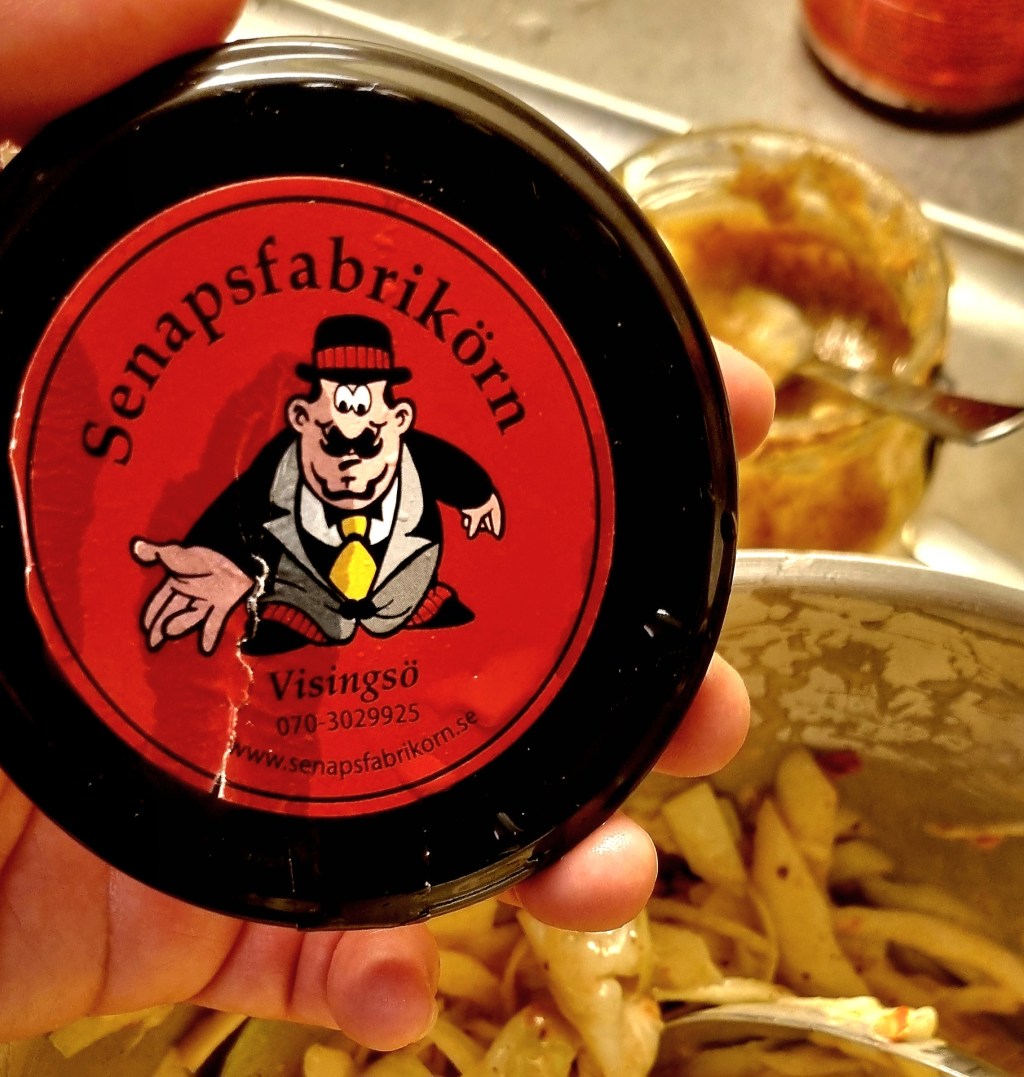 Till detta fylls ett tortillabröd med coleslaw, gurka, majs och inlagd rödlök. Coleslawen är tillsatt med sötstark senap från Senapsfabrikörn Visingsö. Den är så otroligt god att det blir som ett abstinens när den är slut.