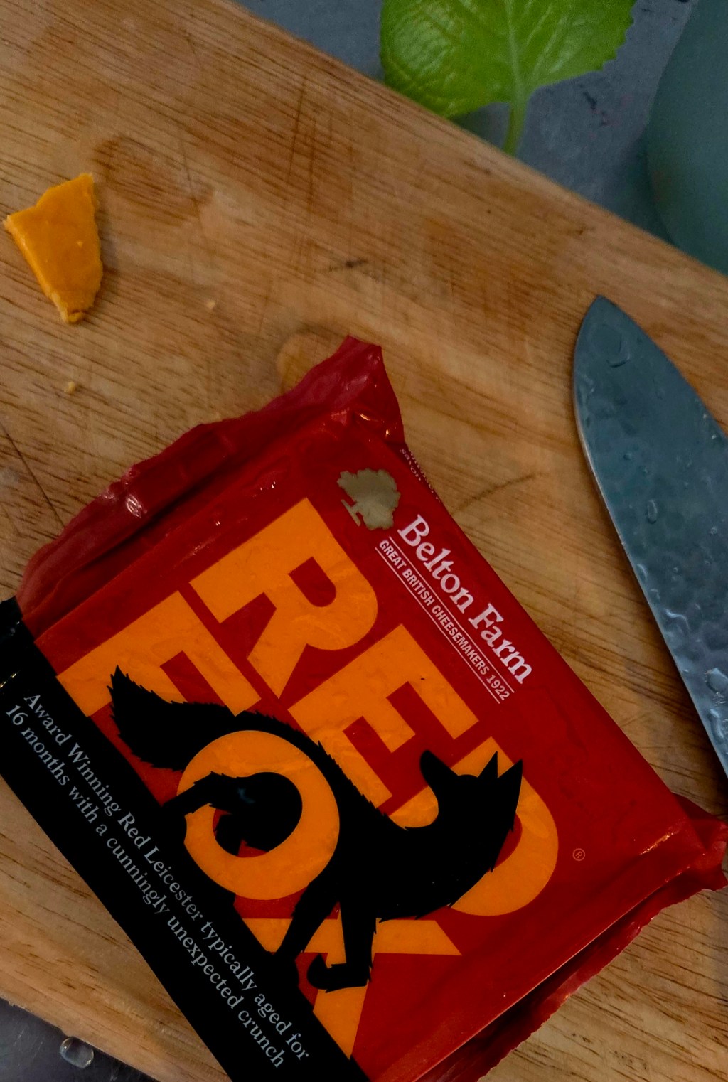 En ost som påminner om cheddar men med mer djup, kraftfull, knäckig och med en liten sötma som spelar fint mot tomatsåsen. Min älskade Gammelknas var slut, men Red Fox visade sig vara ett perfekt substitut.