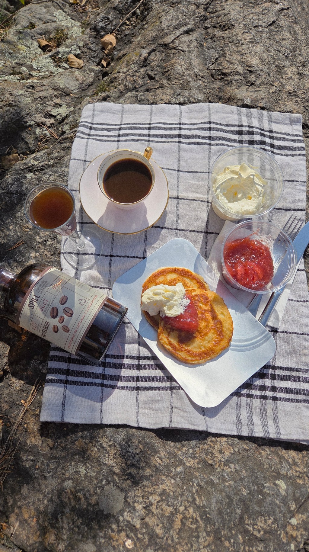 Kaffe i koppen, likör i glaset, plättar på ”tallriken”. Det enda som saknades var en vän att dela det med men ärligt talat, det hade aldrig gått. Det tog mig en evighet att få till den perfekta bilden.