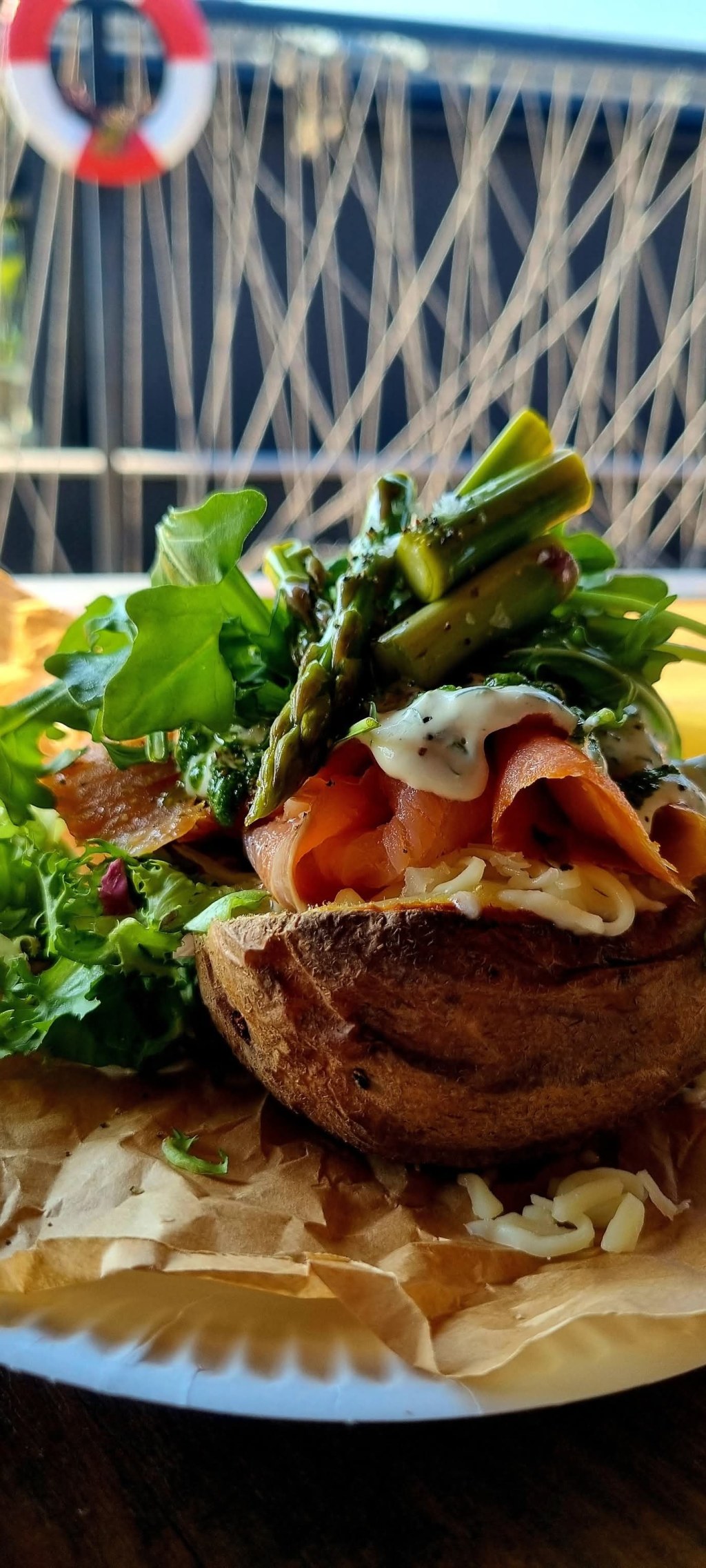 Hon ville bara berätta att hon serverade bakad potatis till personalen när de kom tillbaka efter sommaren, inspirerad av mitt recept med sandefjordsås och kallrökt lax. Eftersom skolan serverar över 300 personer på en timme, blev det några justeringar, istället för att ha riven mozzarella i potatisen, gjorde de ett litet västerbottenchips ovanpå. Det blev stor succé! Personalen blev överraskat glada över att få något som kändes lite mer vuxet och inte den klassiska skagenröran som man nästan hinner tröttna på. De hade också baconkrisp till sin kycklingröra, vilket framförallt männen slukade med allt.