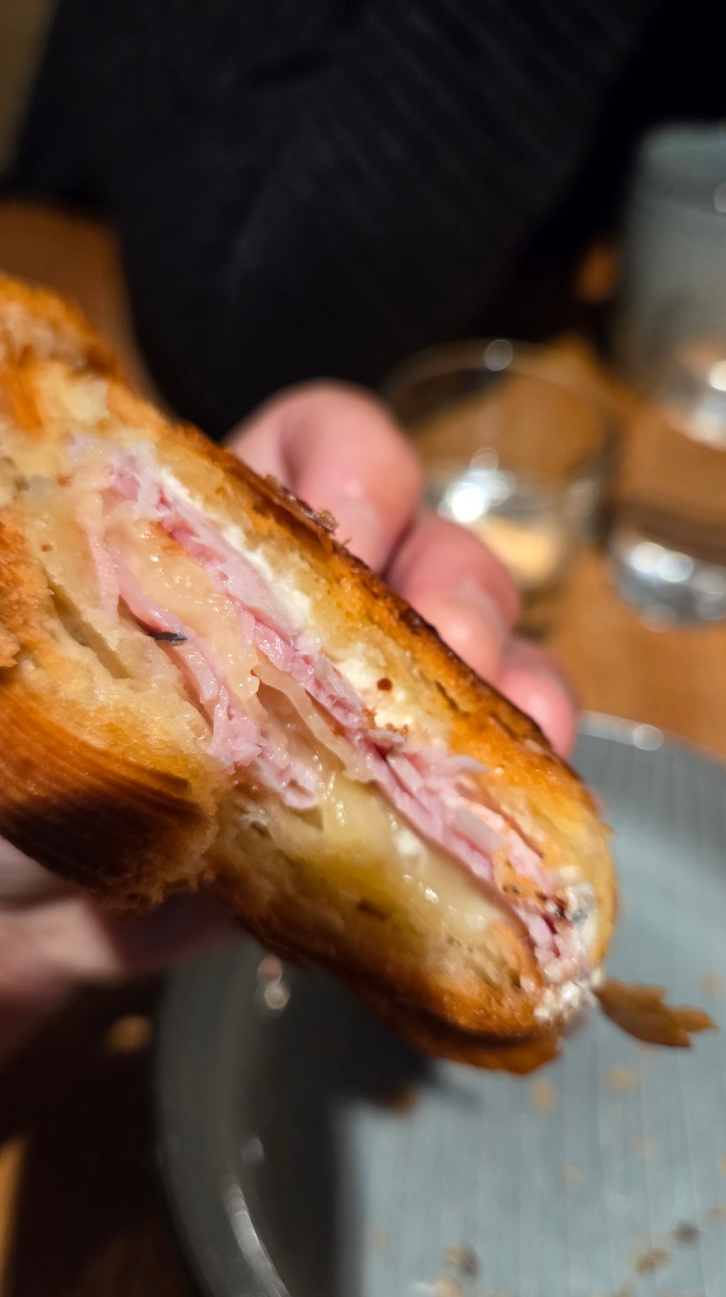 Texturen, frasigheten, kavlingen, allt var perfekt. Jag vet hur svårt det är att få till det där lilla extra när det gäller bakverk, och just den här enkla grillsmörgåsen på croissant var den bästa jag ätit hittills.