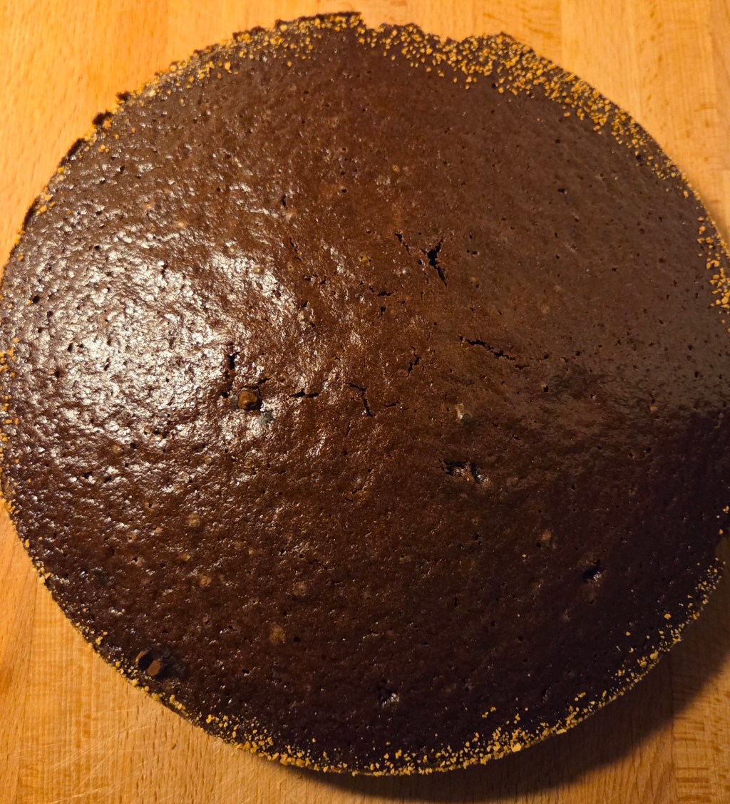 Grädda i mitten av ugnen i ca 20–25 minuter. Kakan ska vara lite kladdig i mitten. Låt svalna, den blir fastare efter en stund. (Det som inte är offentligt är att jag nästan brände sönder kakan för jag ville åt dom torra kanterna – Vill ni ha krispiga kanter så glöm bort tiden)