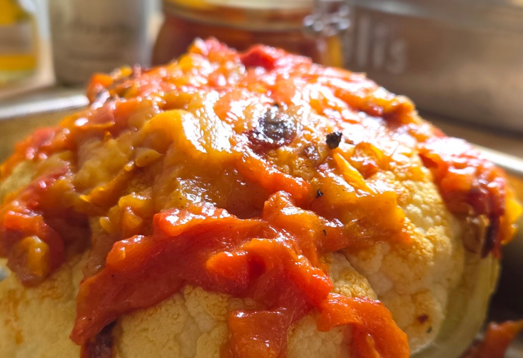 Dags att göra en Mojo Rojo till ugnsbakad blomkål. Det passar bra till middag eller lite roligare lunchlåda så här mot höstens glada färger.
